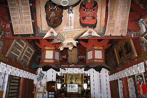 天狗のお面がかっこいい。せっかく来たのでしっかり拝んで行きましょう。