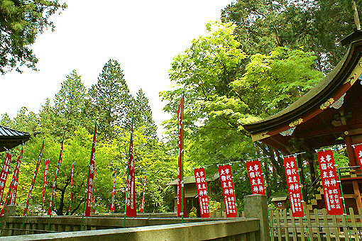 ここの祭神は大山祇神(おおやまづみのかみ)とその娘の木花開耶姫命(このはなさくやひめのみこと)