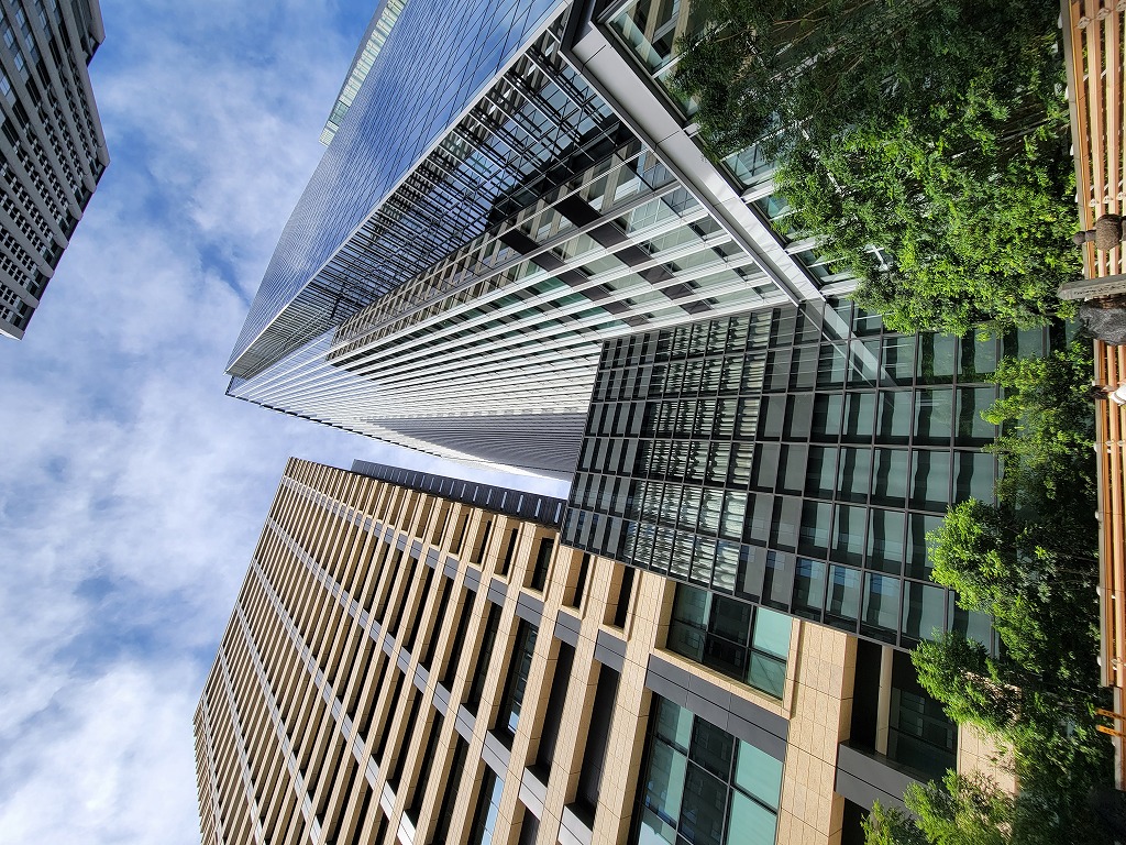なんかかっこいいですね。高層オフィスビル群の中にある塚。