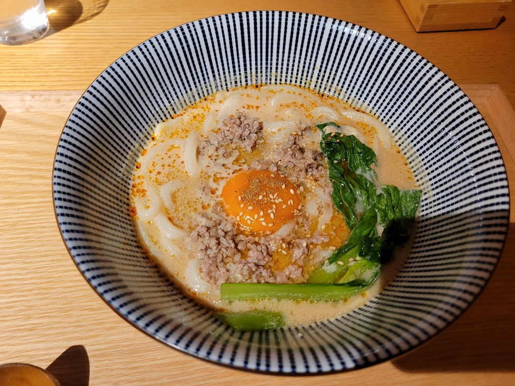 そろそろ昼なので境内にある文化交流館でお昼にしました。 担々うどんを頂きました。優しいお味で美味しくいただきました。
