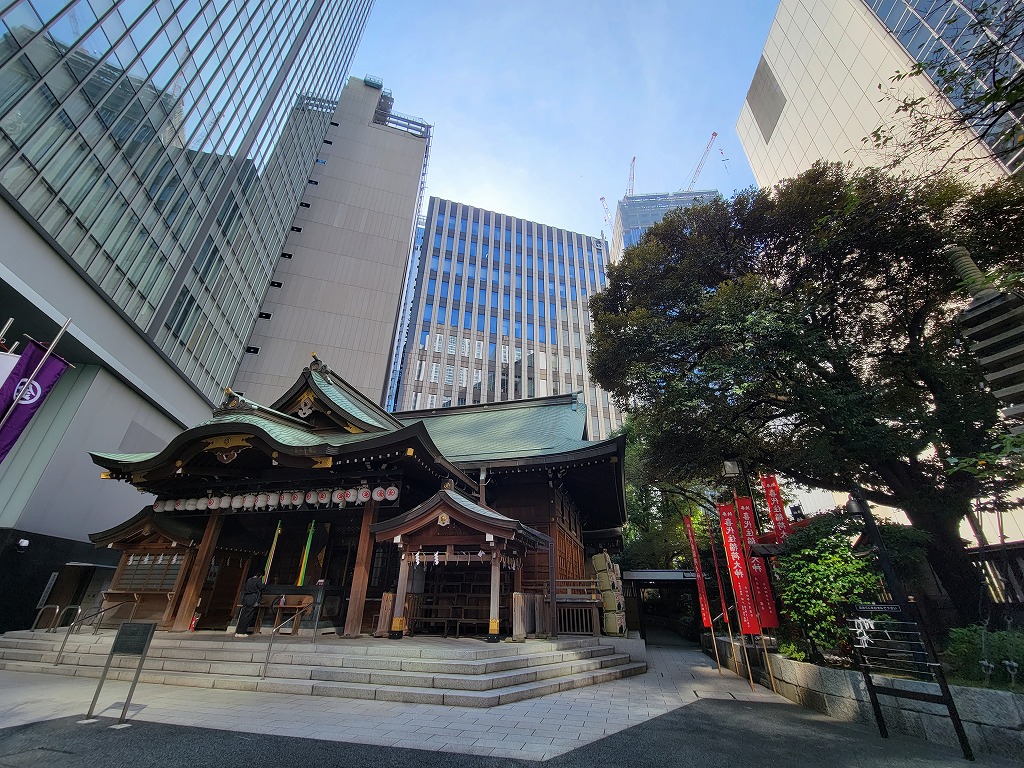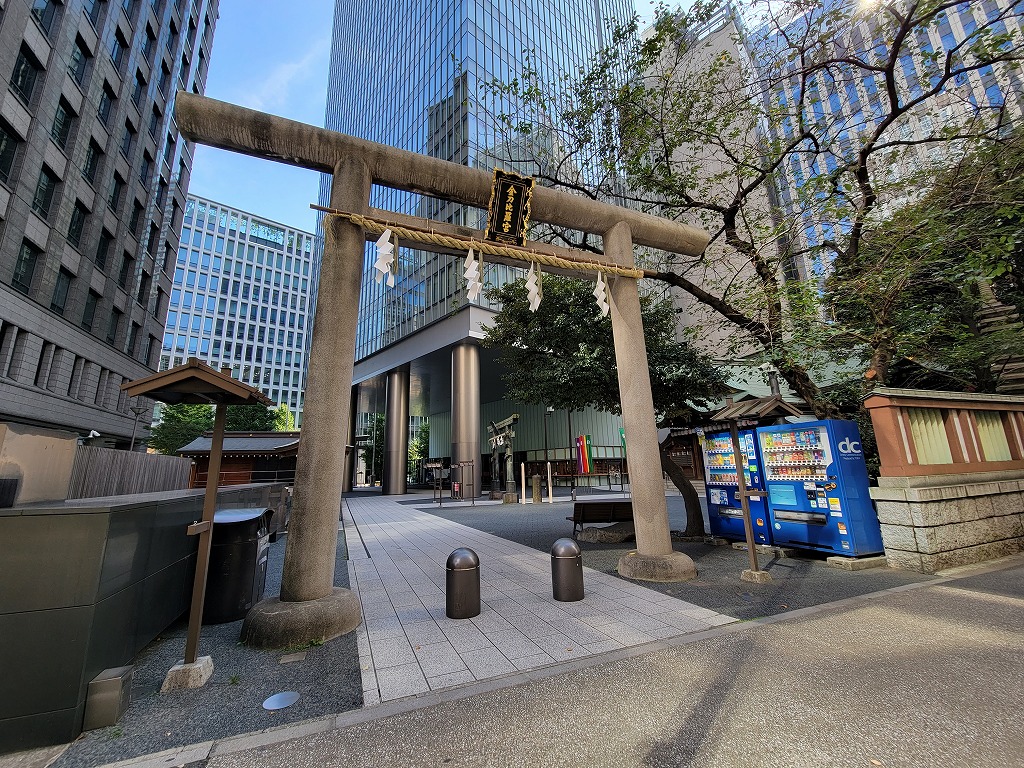ここが正面の鳥居だったんですね。神社をかわす様にオフィスビルが造られたんで しょうね。ここの御祭神も大物でした。大物主命は奈良の三輪神社の御祭神だし 崇徳天皇は平将門につづく日本三大怨霊なので神として祀り護ってもらってるのでしょうね。