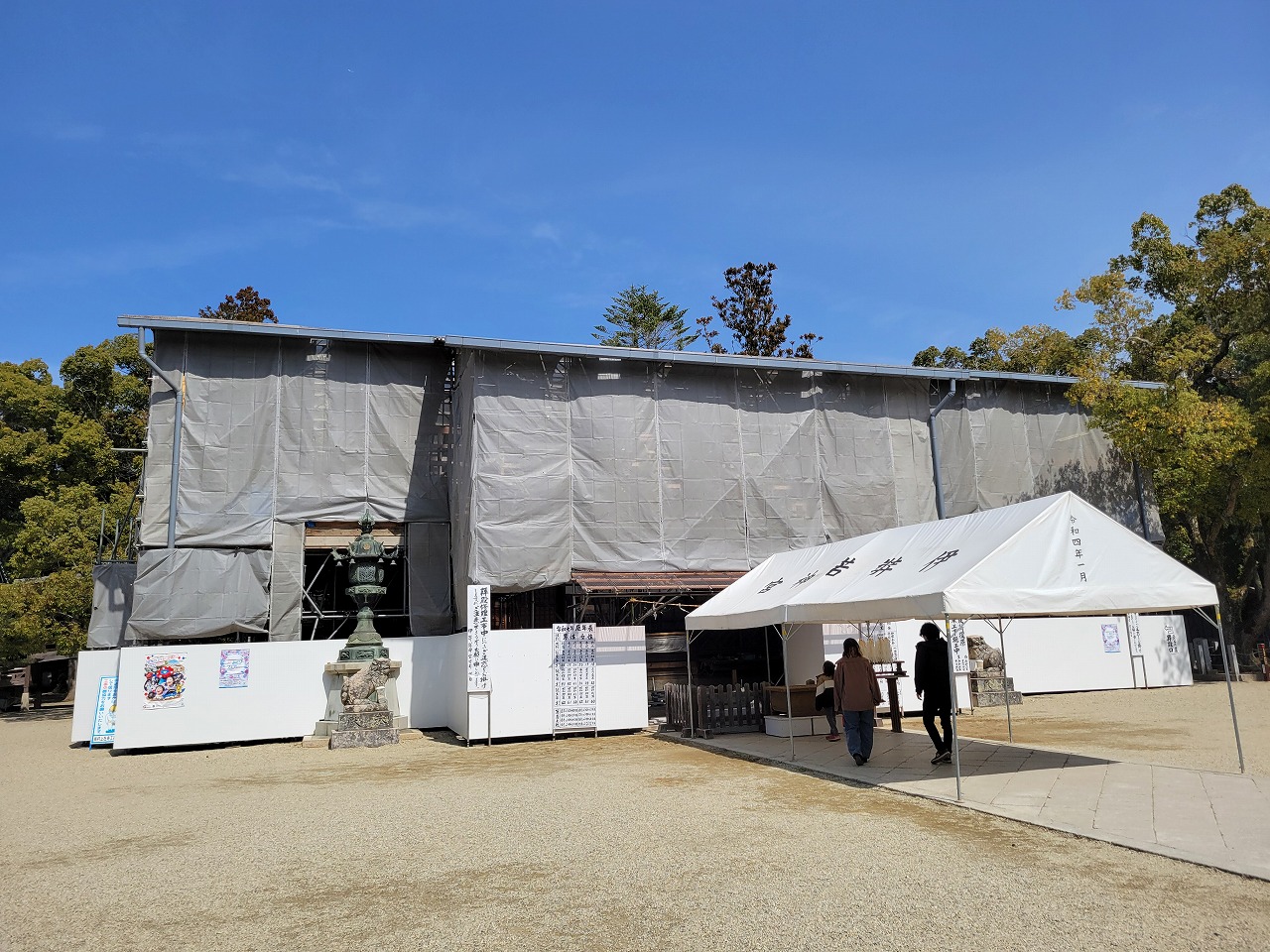 現在(2025.3)、拝殿の屋根をアルミから茅葺屋根に変える為工事中とか。9月位に作業風景を見学できるとか。 行けたら行きたいな~。