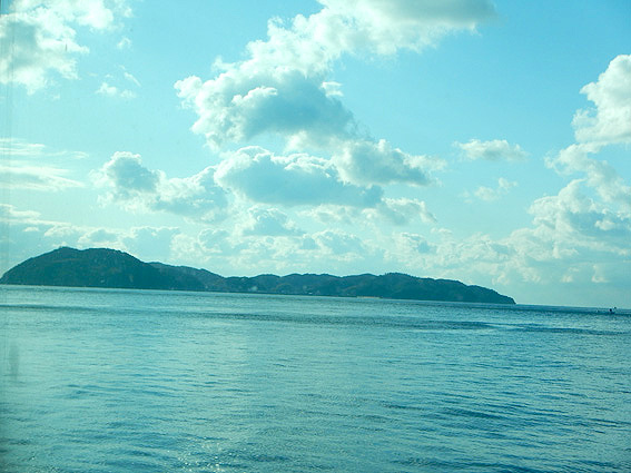 見えてきましたよ。沼島(ぬしま)が。あれが国生み神話に登場するおのころ島の候補の一つだそうです。