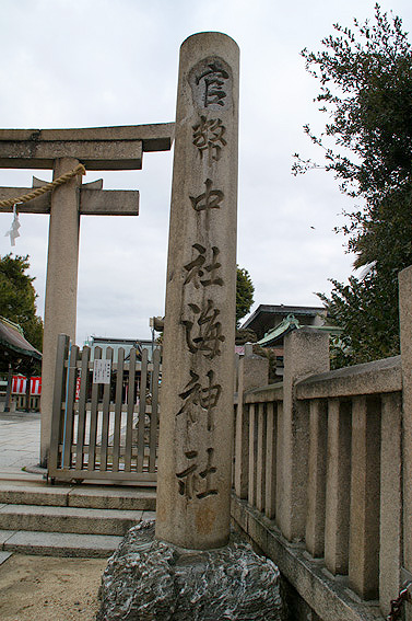 海神社です。播磨国明石郡垂水郷(はりまのくにあかし郡たるみ)に属し、伊和(いわ)神社、粒坐天照(いいぼにますあまてらす)神社と海神社の三社で播磨三大社に数えられるそうです。
