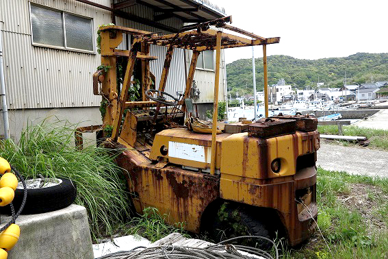 ボロボロのフォークリフトですね。整備しても動かないだろうな~。