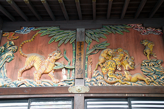 当時、狩野派の流れを汲んで、母虎があえて豹柄でかかれたこお彫刻は、子育ての大切さを名工が 彫刻にこめて表現したものと伝えられているそうです。
