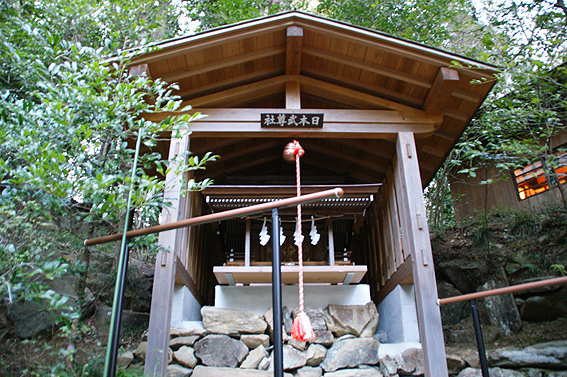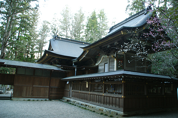 本殿の裏には、ヤマトタケルノミコトを祀るお宮があります。 八十八夜(5/2)の奥宮祭の時は、ここから御霊を神輿に乗せて、奥宮へ向かうそうです。