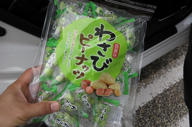 旅の道中に食べるお菓子を購入。わさび味好きなんですよね~。