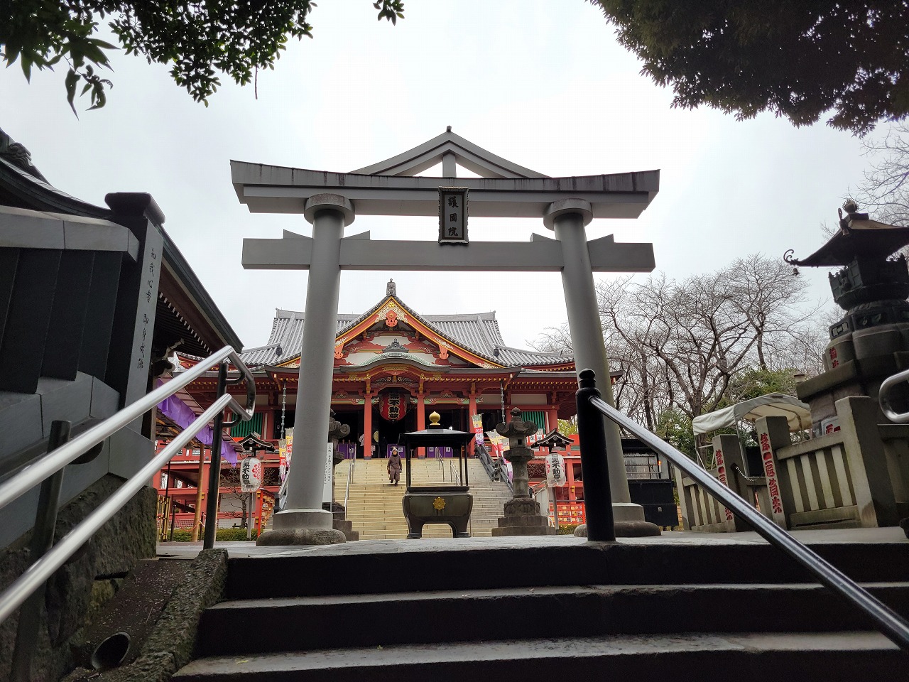 男坂を登り終えると、目の前に山王鳥居が待ち構えてました。神と仏を表した鳥居ですね。