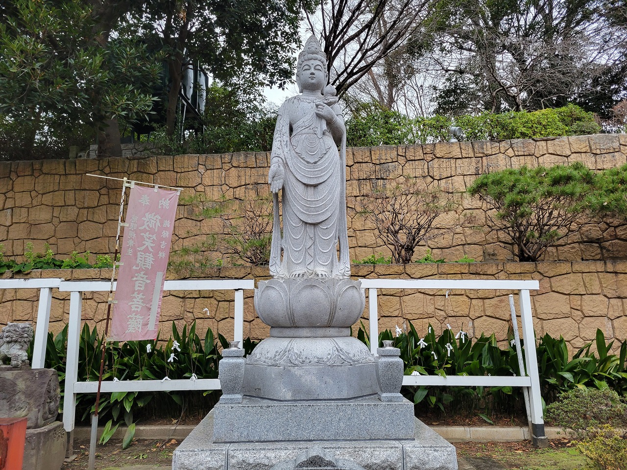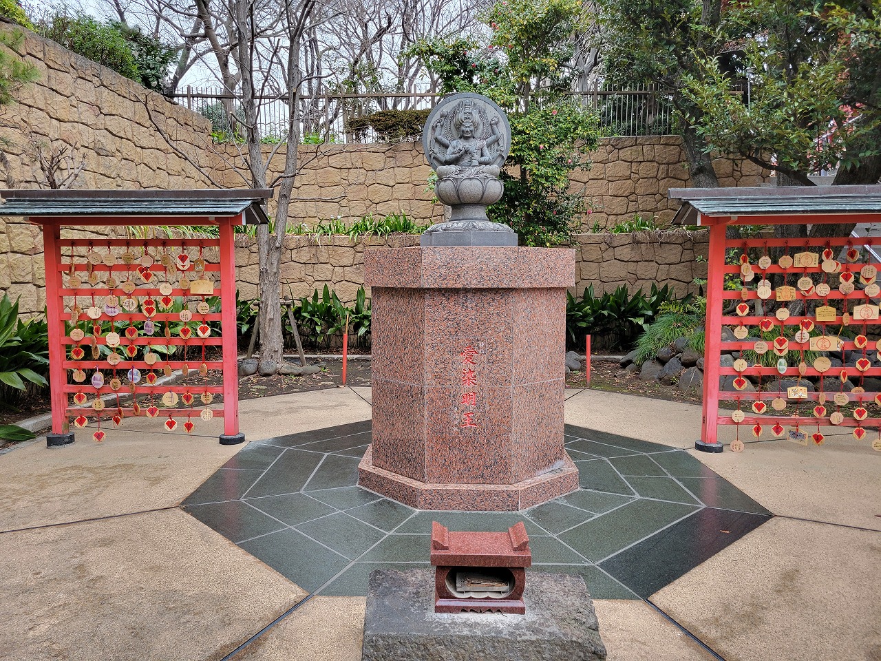 大本堂の横手には。微笑観音に愛染明王像がありました。