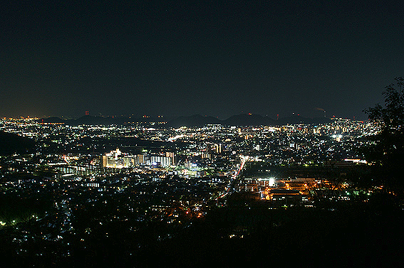 登山口から5分くらいで急に視界が開けて姫路の夜景がドーン!と現れました。綺麗ですね~。さっそく、夜景撮影タイムです。