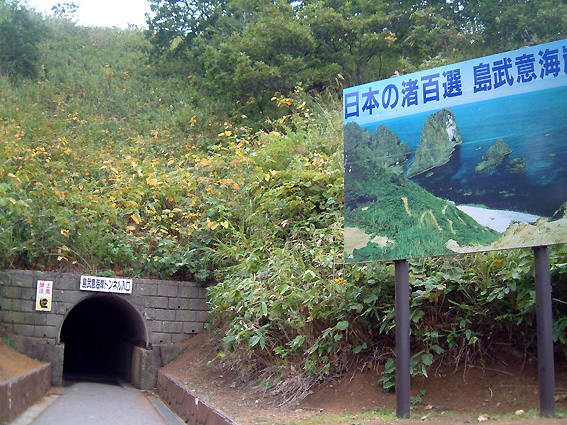 駐車場から小さなトンネルを抜けると島武意海岸が見えてきます。 ちなみに小さなトンネルは明治28年に手で掘られたそうですよ。