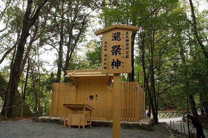五十鈴川御手洗所からすぐの所に、瀧祭神(たきまつりのかみ)が祀られています。