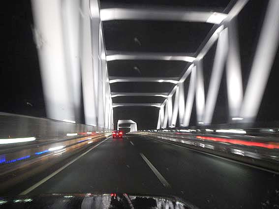 東京ゲートブリッチを渡ります。天気がいいと夜景が最高に綺麗なんですけどね~。残念。
