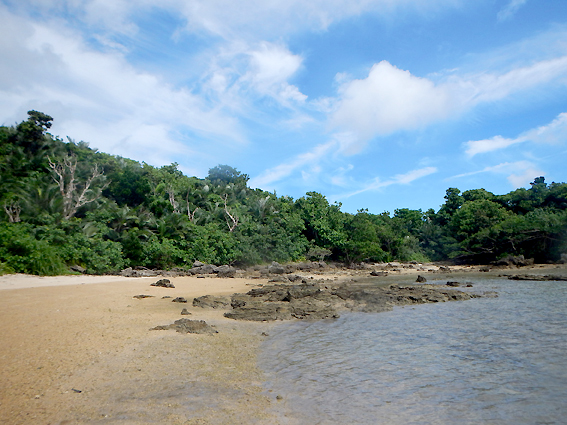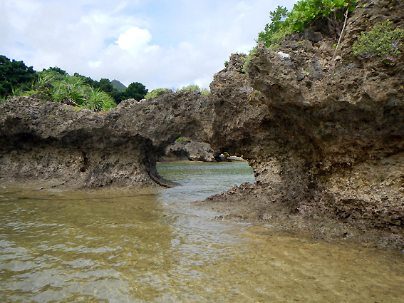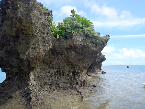 一旦浅瀬に寄りカヌーから降ります。波に削られてできた不思議な形をした石灰岩?珊瑚?でした。