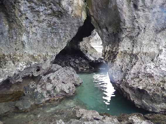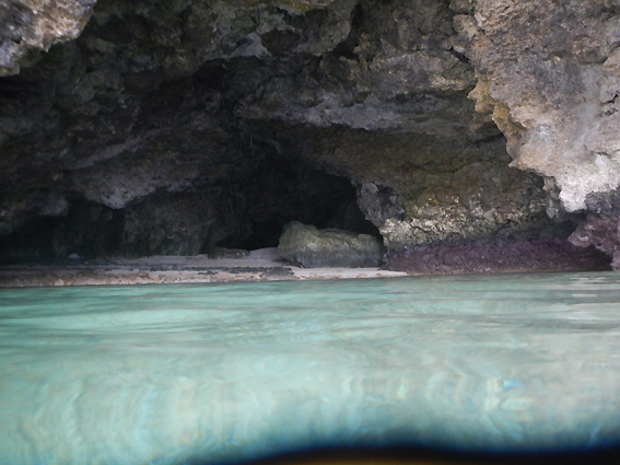 洞窟の入り口に到着です。シュノーケルを付けて洞窟へ入ります。
