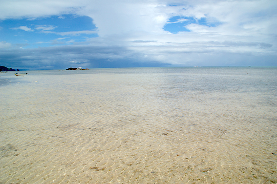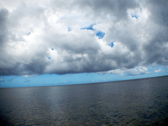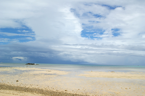 あらら、もろに引潮だわ。これはさすがに泳げないですね。残念。 向こう側にある雲かっこいいけど・・・もろ雨雲じゃない?