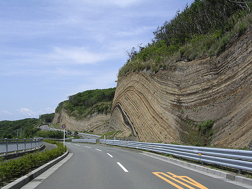 こんな感じでこの区間だけ地層が見物できます。しかし、車を停める駐車スペースはなかったような・・・。