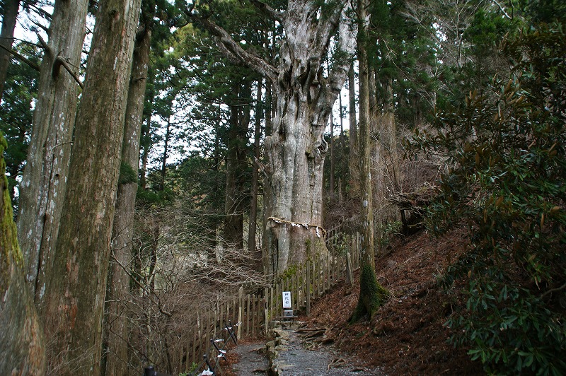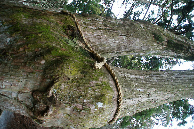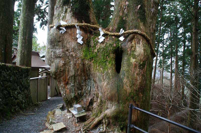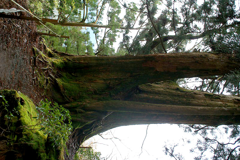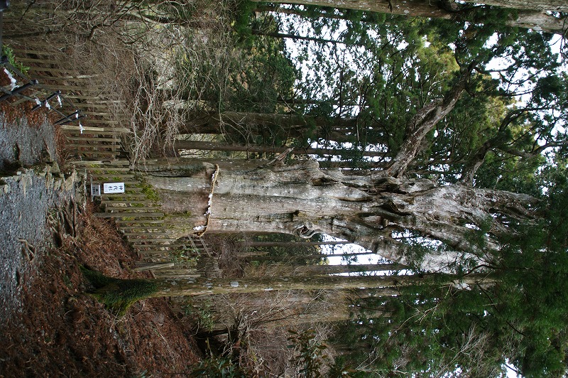 お~さらにでけ~。玉置神社境内は聖域としている為伐採を禁じているのと温暖多雨と 土壌が良い為すくすく育っている様です。樹齢約3000年とも言われているそうです。