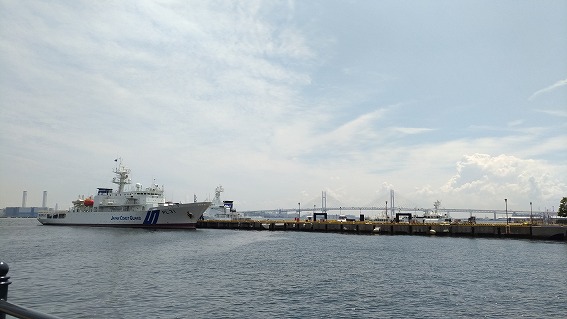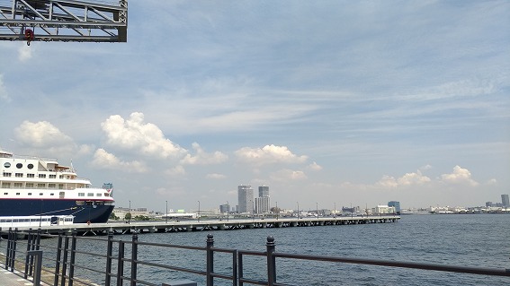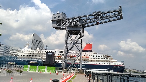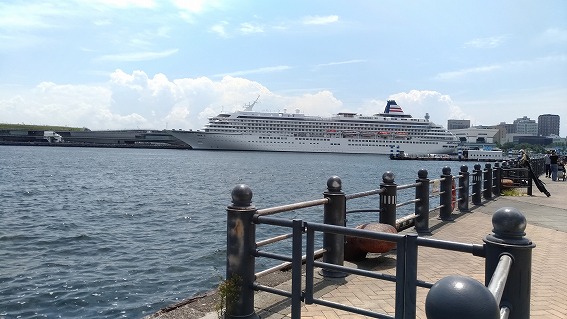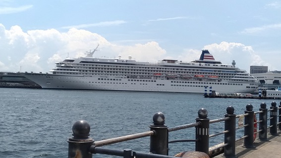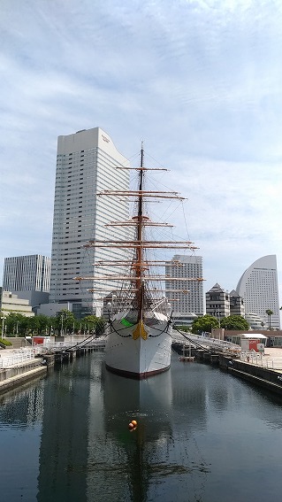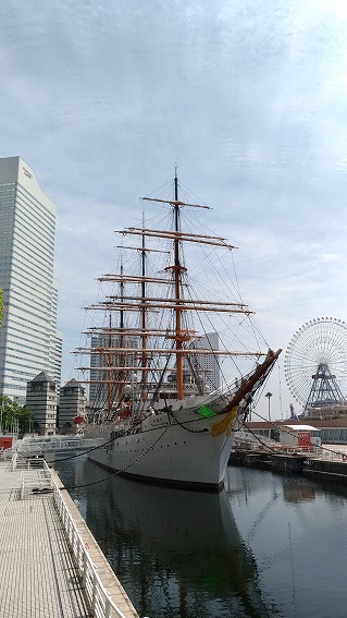 ランドマークタワーから赤レンガ倉庫方面へ歩くと大きな船が現れました。大きくて綺麗な船です。