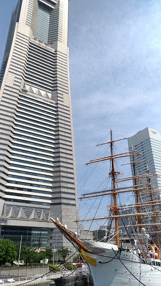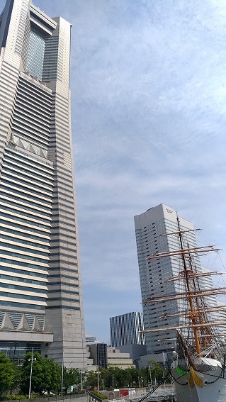 ランドマークタワーが近すぎて日本丸が入りきれません。