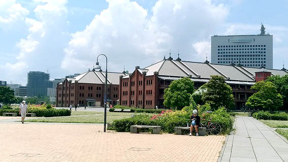 さ~汽車道を通って赤レンガ倉庫方面へ向かいますよ。