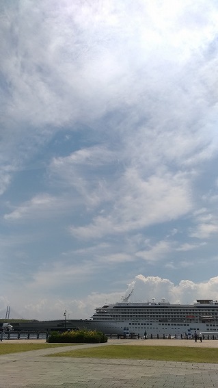 大さん橋に大きなフェリーが停泊してますね。