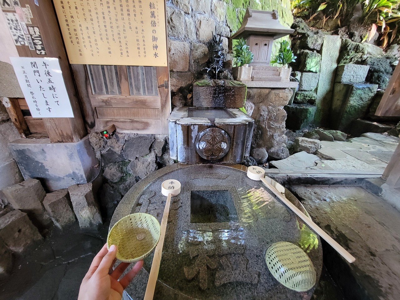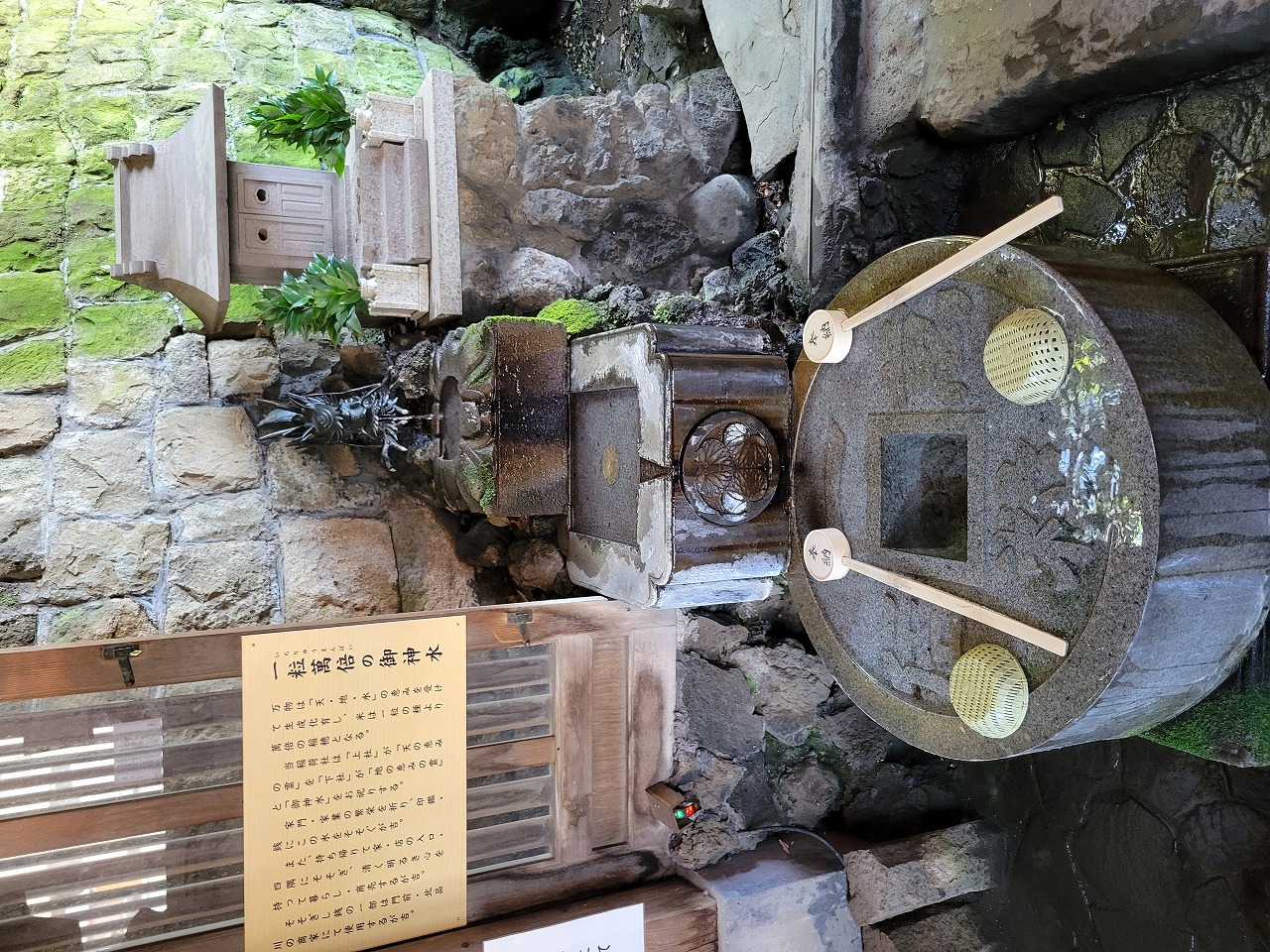 さっそく小銭を御神水で洗いましょう。
