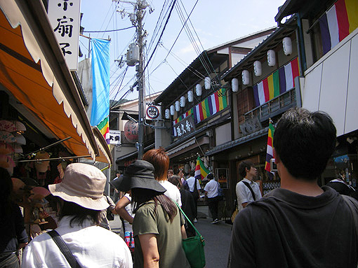 甘い物食べ終わり次の目的地へ行く途中、舞妓さん達と遭遇。この暑い中よく着物来てられますよね。