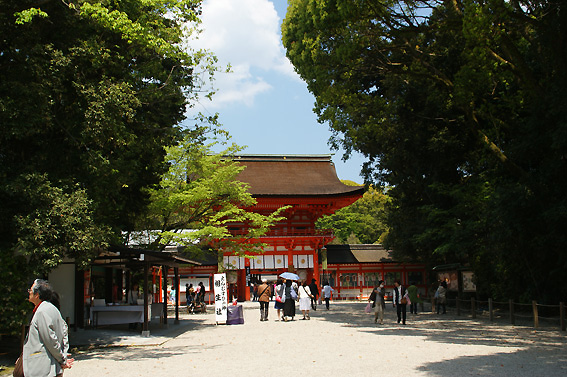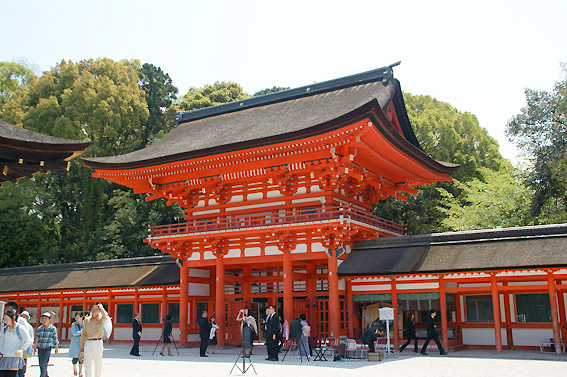 やってしまいました。下鴨神社は森の参道があり、癒されながら行き着く先に南口鳥居があり、 楼門、中門、本殿があるのですが、真横から入ってしまったみたいで、いきなり中門にたどり着いてしまいました。