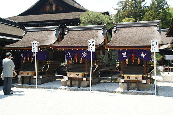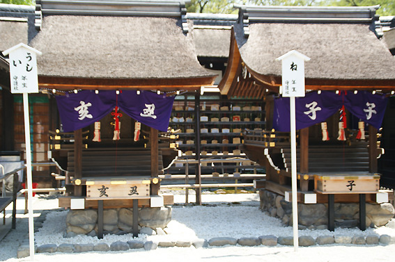 中門を入ってすぐに言社(ことしゃ)があります。小さな7つの社に十二支を守る神が祭られているそうです。