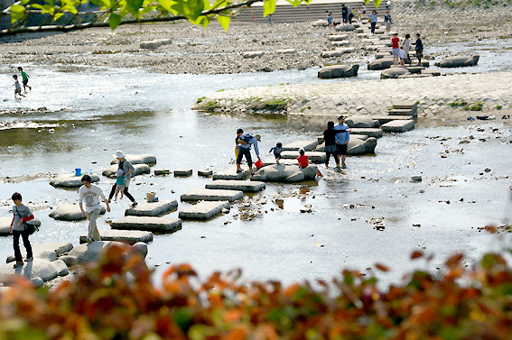鴨川と高野川の合流地点ですかね。のどかに遊んでます。気持ちよさそうです。