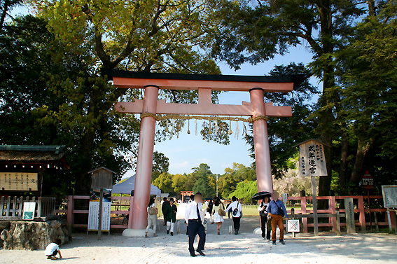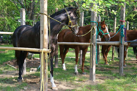 一通り上賀茂神社も見終わったので白砂の参道に戻ります。途中馬達がいたので寄ってみることに。