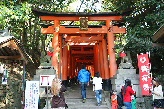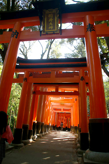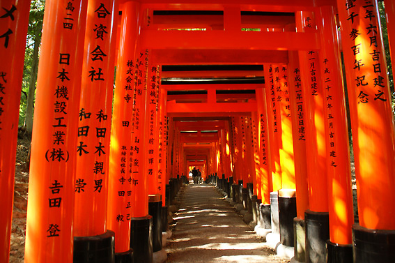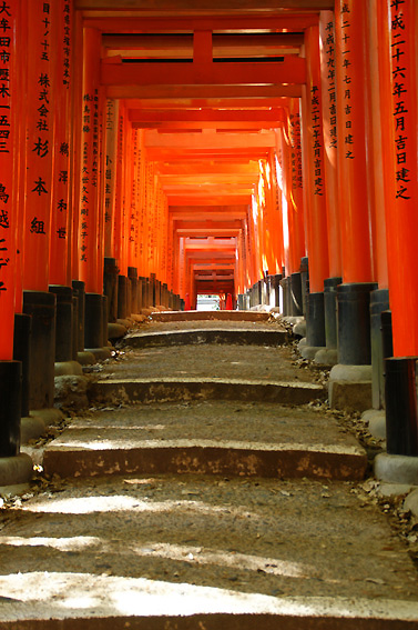 山道に列をなす鳥居達、緑と朱色のコントラストがなんとも言えないです。