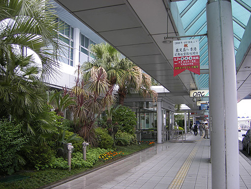 約1時間半くらいで鹿児島に到着しました。 ニッポンレンタカーへ連絡し迎えのバスを待ちました。完全にドシャ降りの雨です。