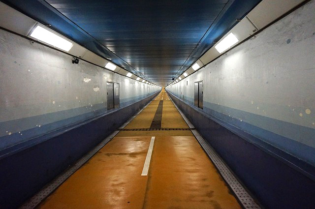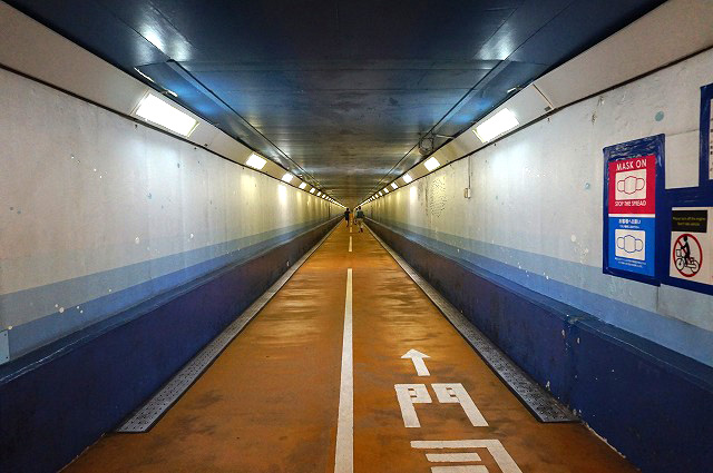 トンネルの全長780mみたいです。けっこうありますね。 ジョギングコースで走っている人もちらほら。空気悪そうだけどな~。