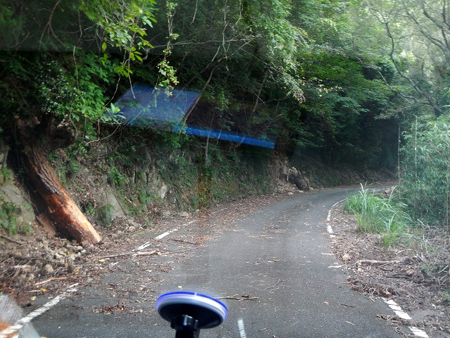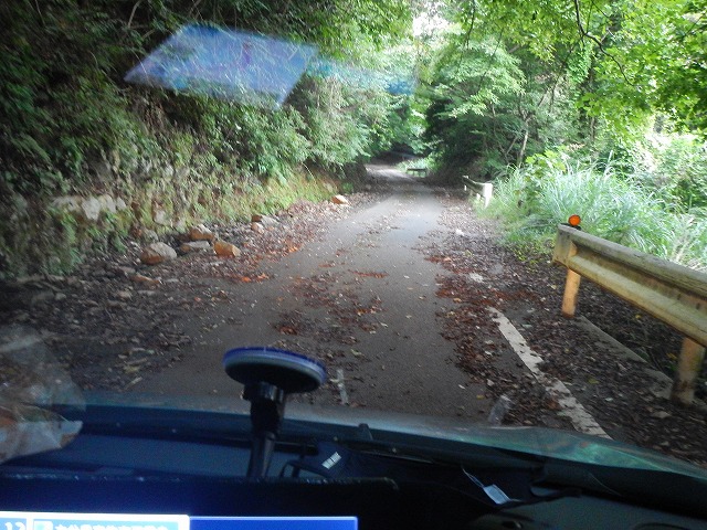 所々大木、石等が道路に散乱してますね。