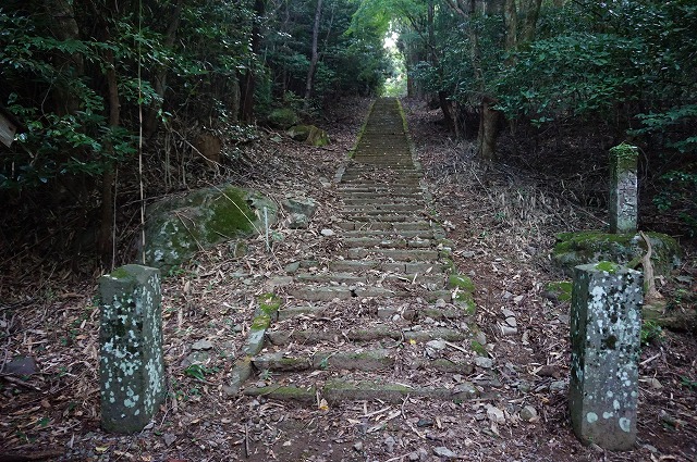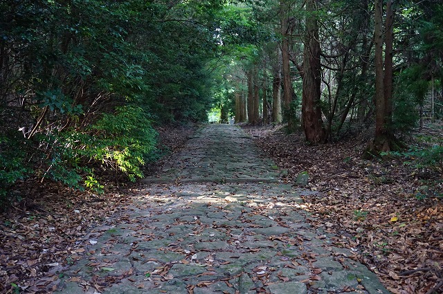 石段を登りきったら石畳を歩いていくと。