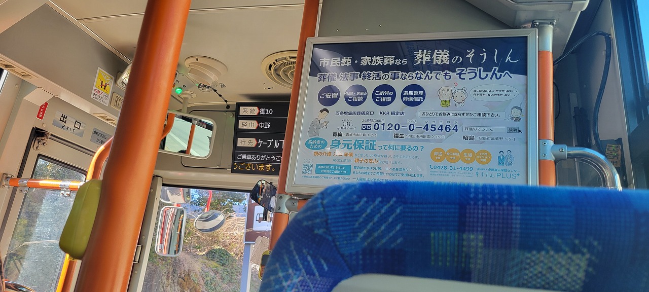 一応東京都だけどバスの本数少ない為しばらく待ちます。約20分頃ようやくバスが 到着。乗込みます。