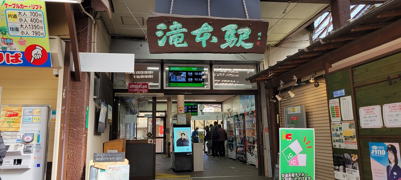 御嶽登山鉄道 滝本駅に到着。往復の切符を購入しました。