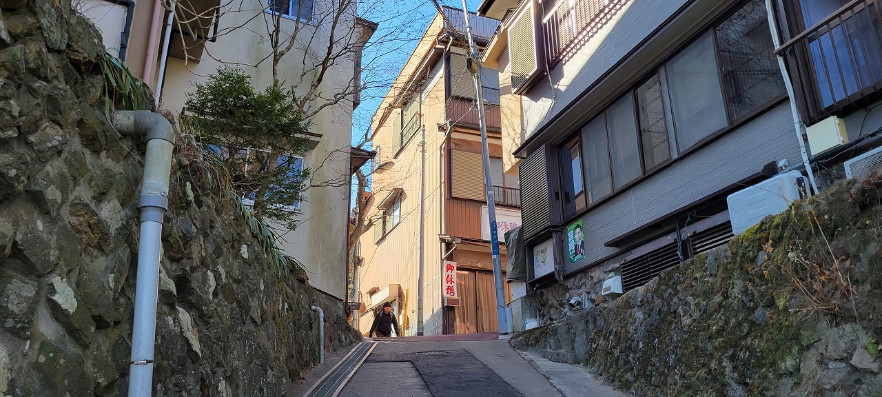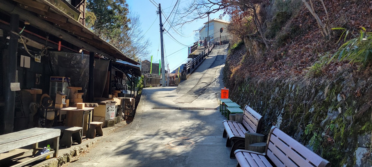バス停からケーブルカー乗り場まで少し歩きます・・・と言うか登ります。 かなり急斜面でした。けっこう疲れます。