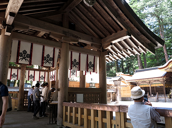ちなみに、本宮三の御柱は法華寺付近にあり、本宮四の御柱は勅願殿の裏側にあるそうです。 御柱は拝殿を囲むように置かれていました。何かの結界とかなのだろうか?