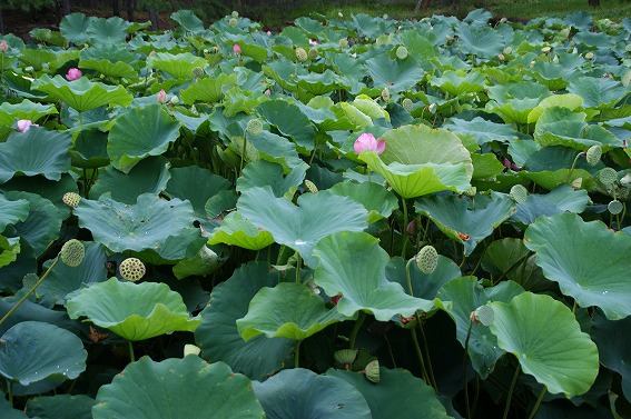 蓮の葉はお寺によく似合いますね。