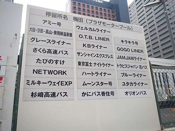 早歩きで梅田駅まで向かいます。 ここには沢山のバスが停まりますね。