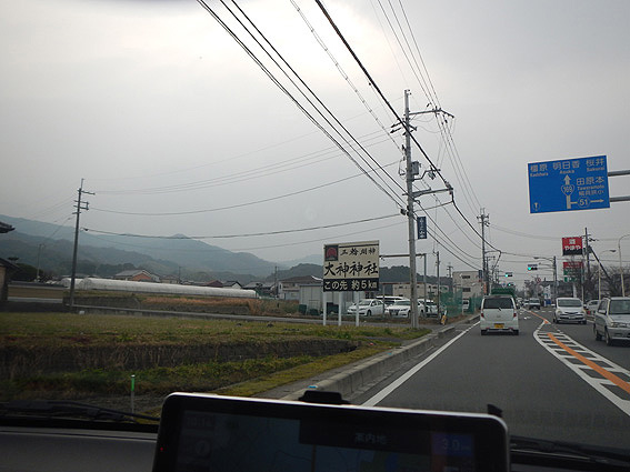 お!?見えてきました。大神神社の看板が。