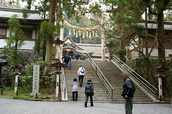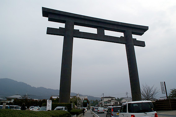 さっそく大鳥居の下にある無料駐車場に車を停めて神社を目指します。