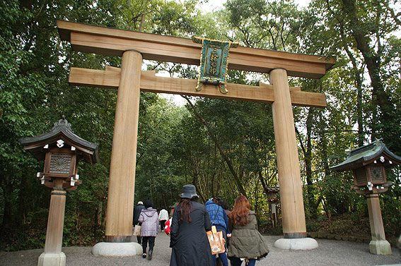 拝殿内に三ッ鳥居があり、その向こう側が三輪山になっているみたいです。 ちなみにこの鳥居、記録が少ない為謎が多い鳥居だそうです。同じ鳥居が埼玉の三峰神社にもありますよ。 拝殿に到着です。賑わってますね~参拝者多いな~さすがです。