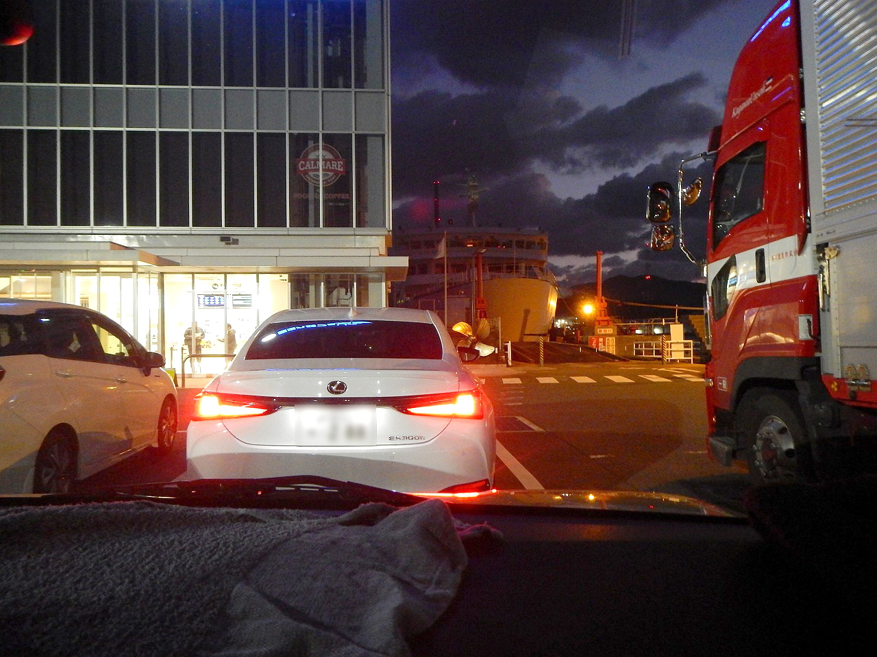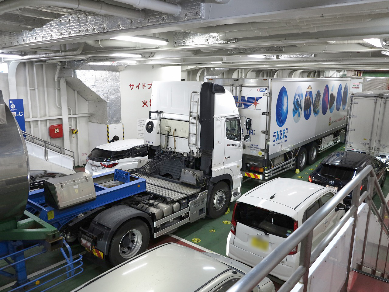 大型トラック、トレーラー、乗用車等結構な台数が乗込んでました。