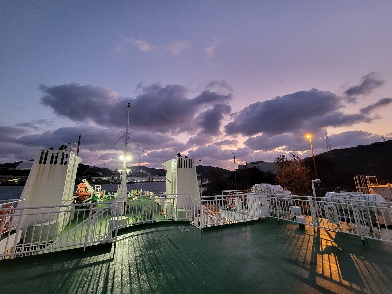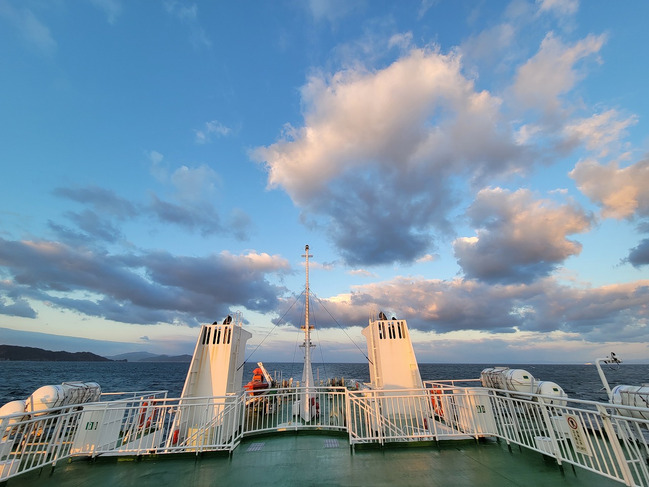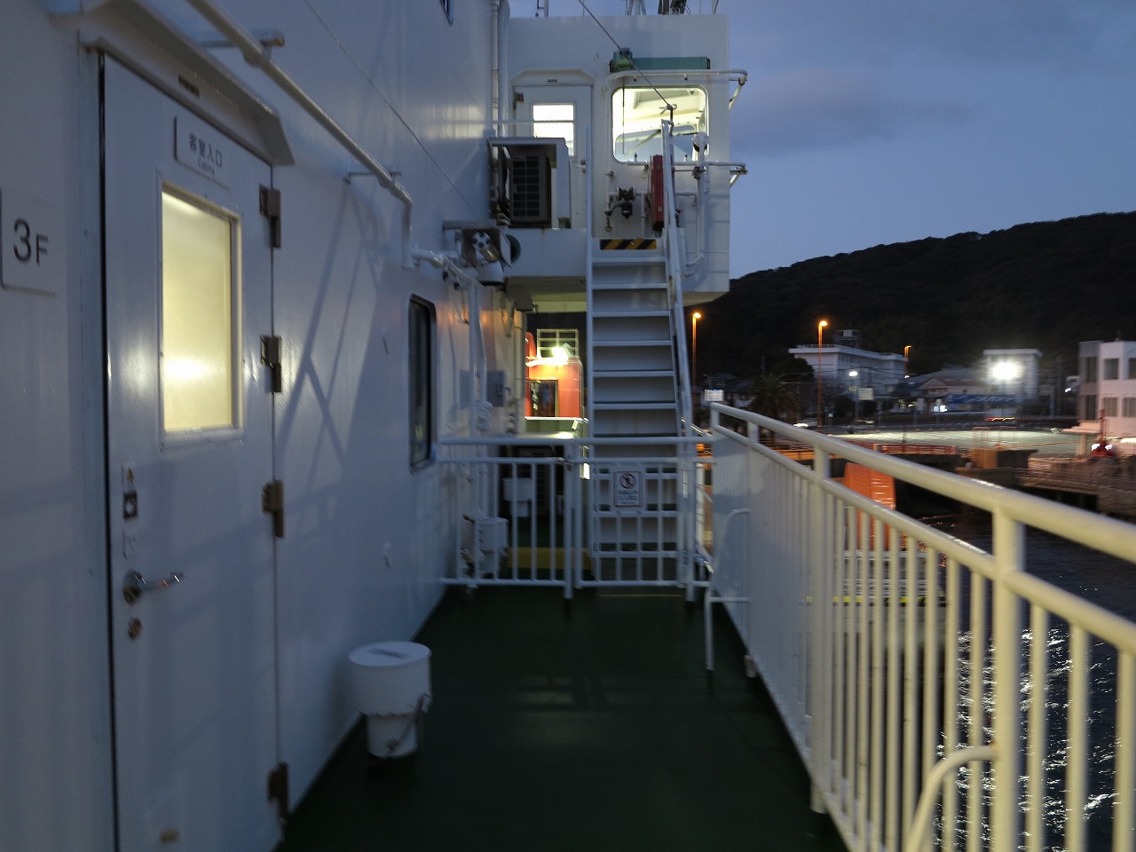 AM7時。乗船時間になったので従業員の指示に従いカーフェリー(涼かぜ)に乗込みます。