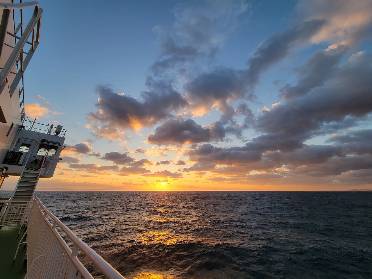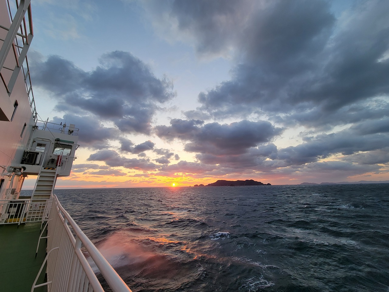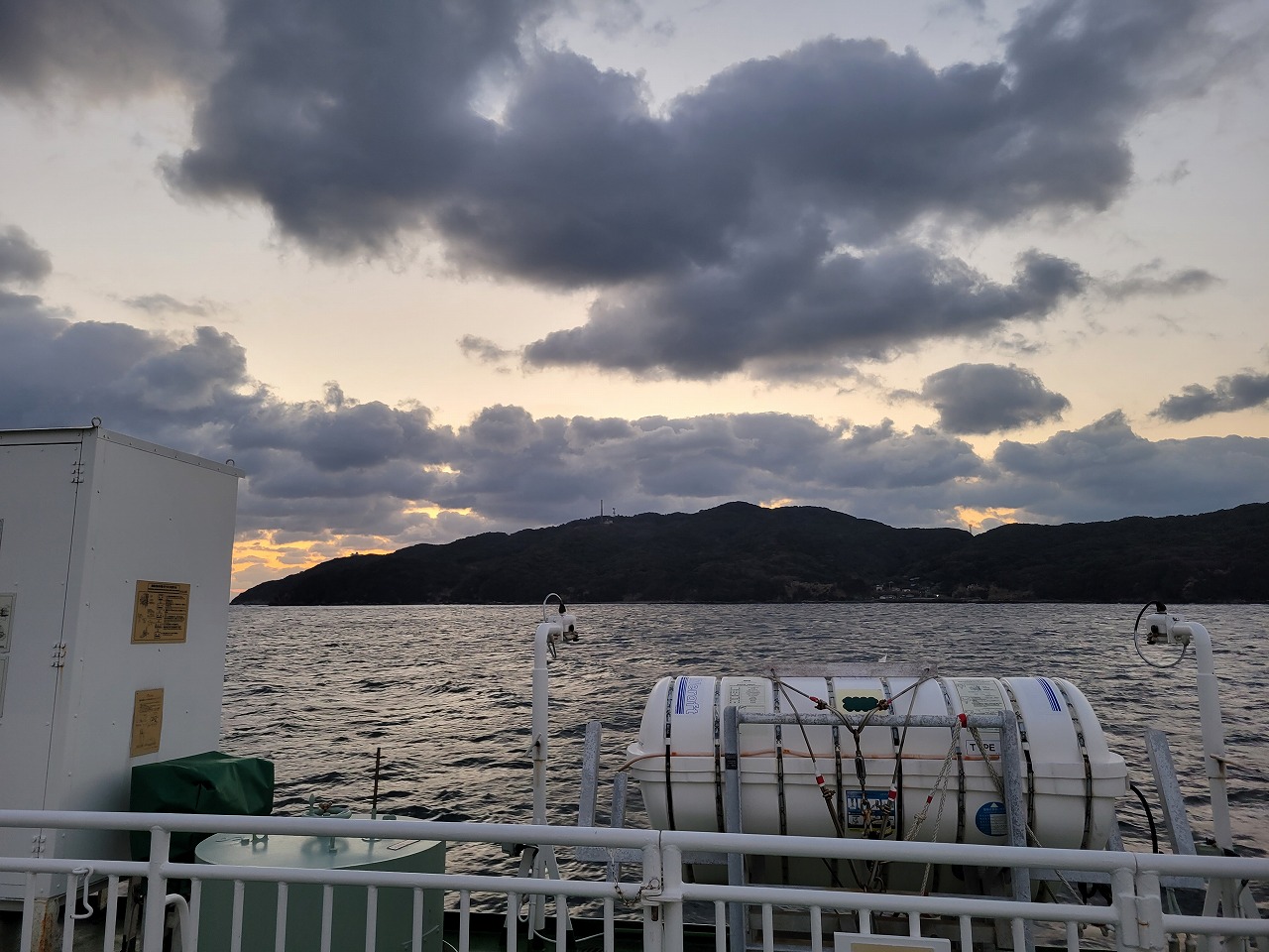 AM7時。乗船時間になったので従業員の指示に従いカーフェリー(涼かぜ)に乗込みます。